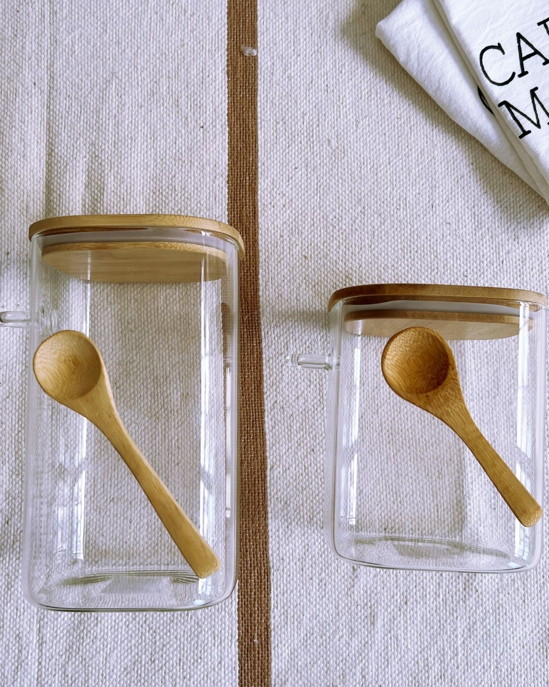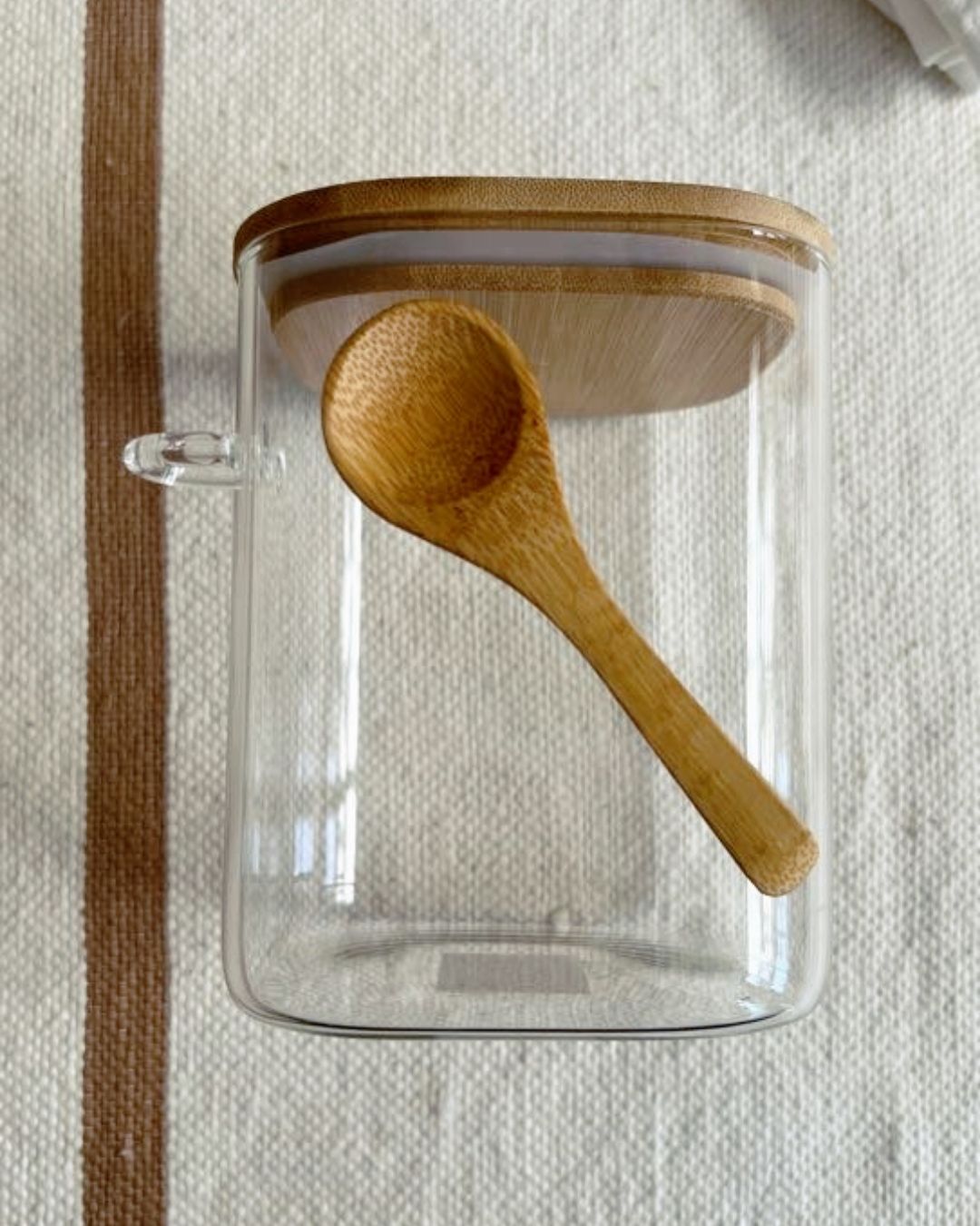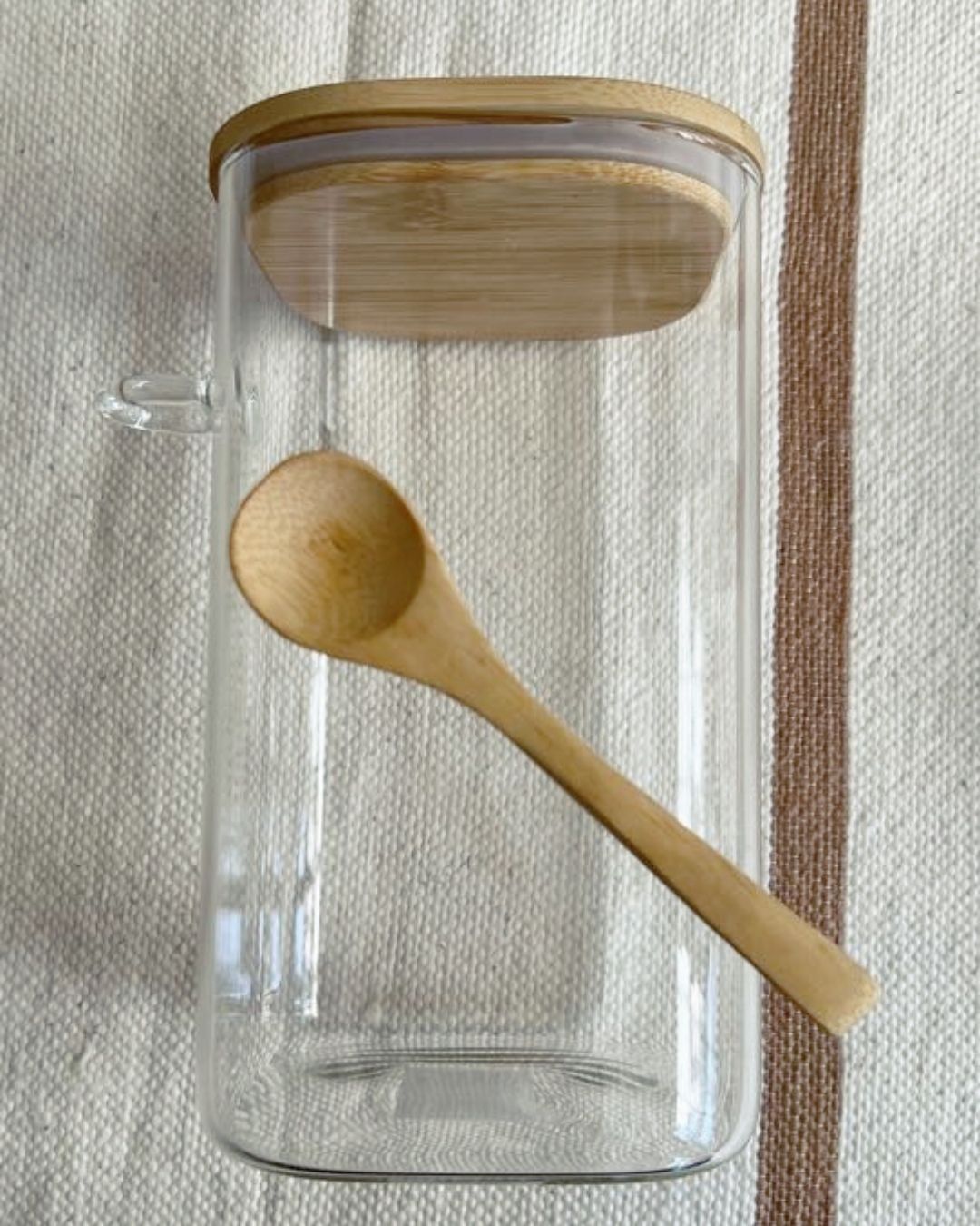 Organizador en tendencia de vidrio y madera, incluye cuchara.