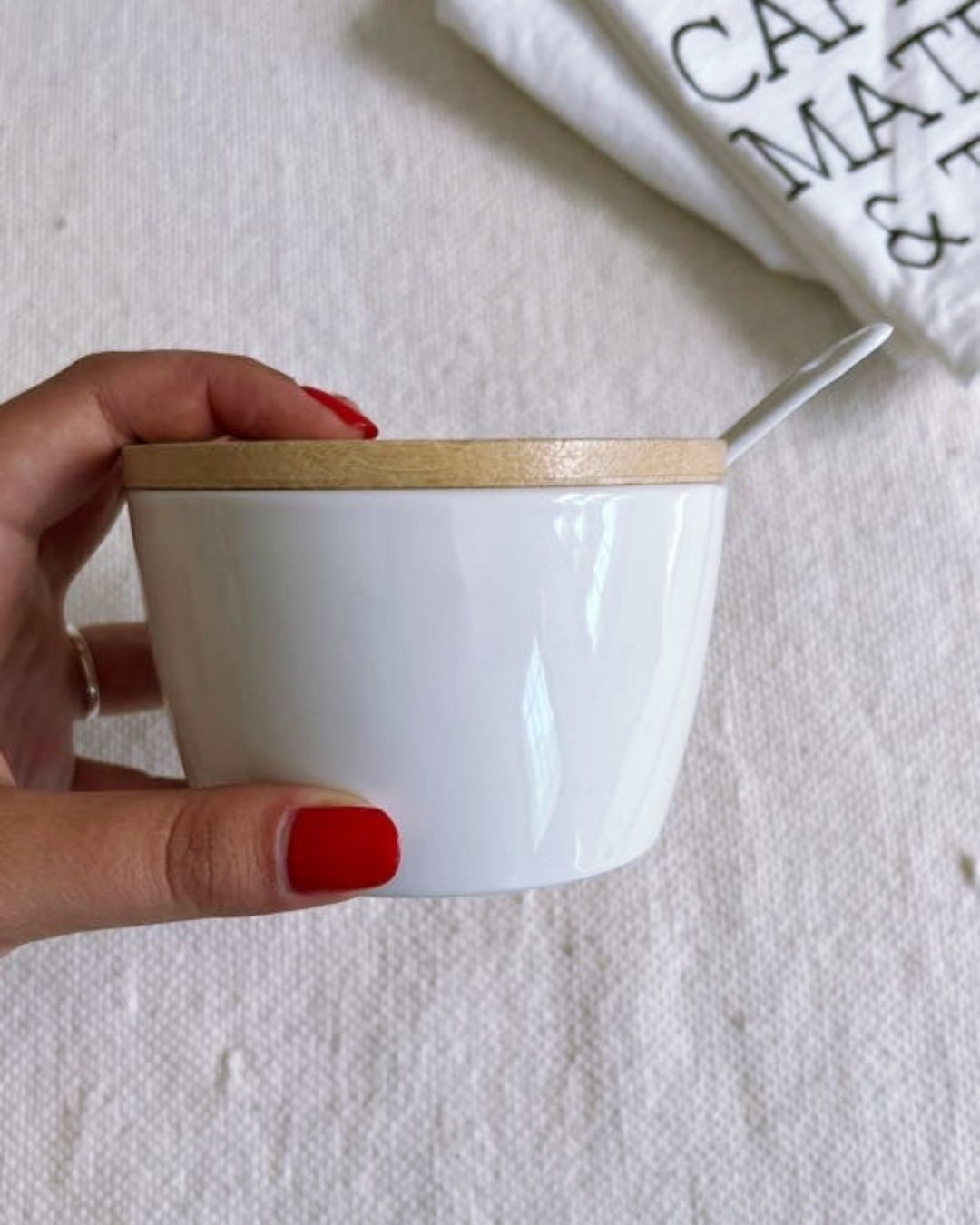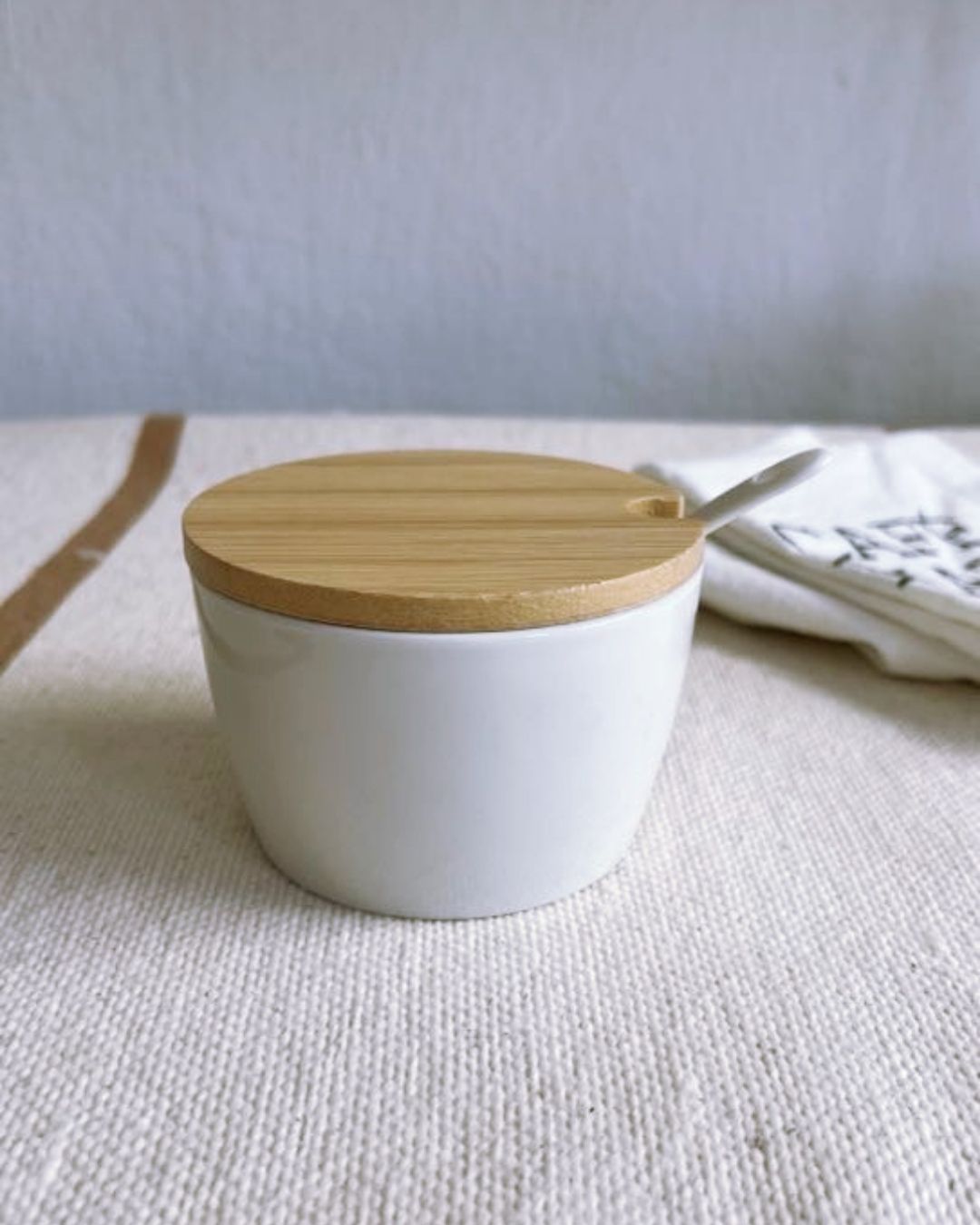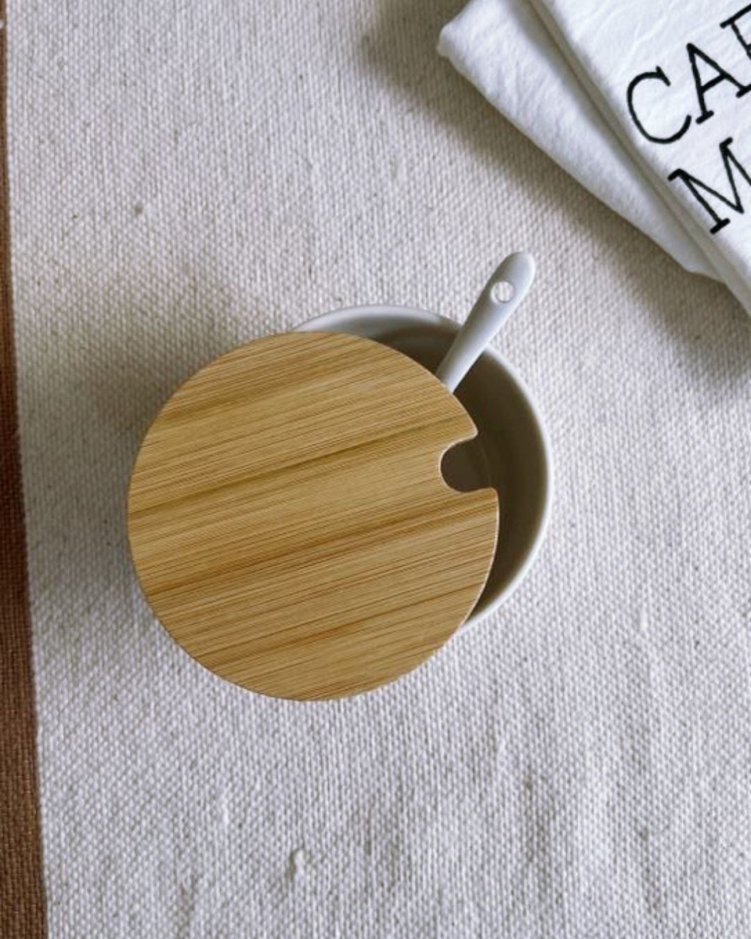 Azucarera de ceramica con cuchara y tapa