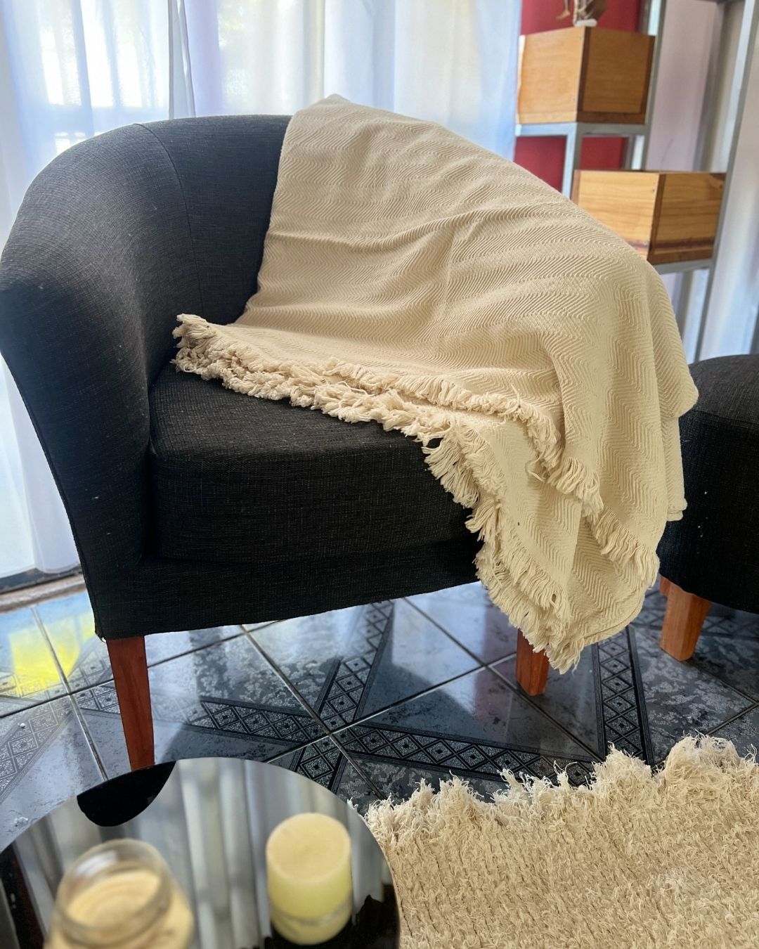 - Manta con flecos y relieve espigas que le dan un toque único.